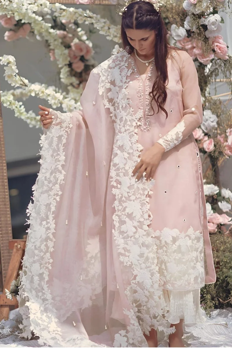 3 Piece Embroidered Lawn Shirt with Embroidered Organza Duppata BZ 2585