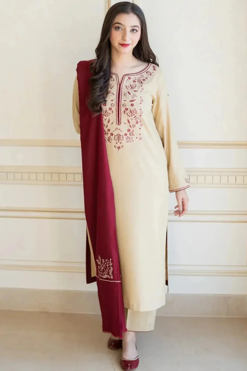 Unstitched Embroidered Dhanak Wool Suit With Embroidered Dhanak Shawl SR-965