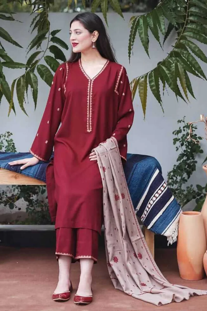SR-33 Unstitched Embroidered Dhanak Wool Suit & Embroidered Dhanak Shawl